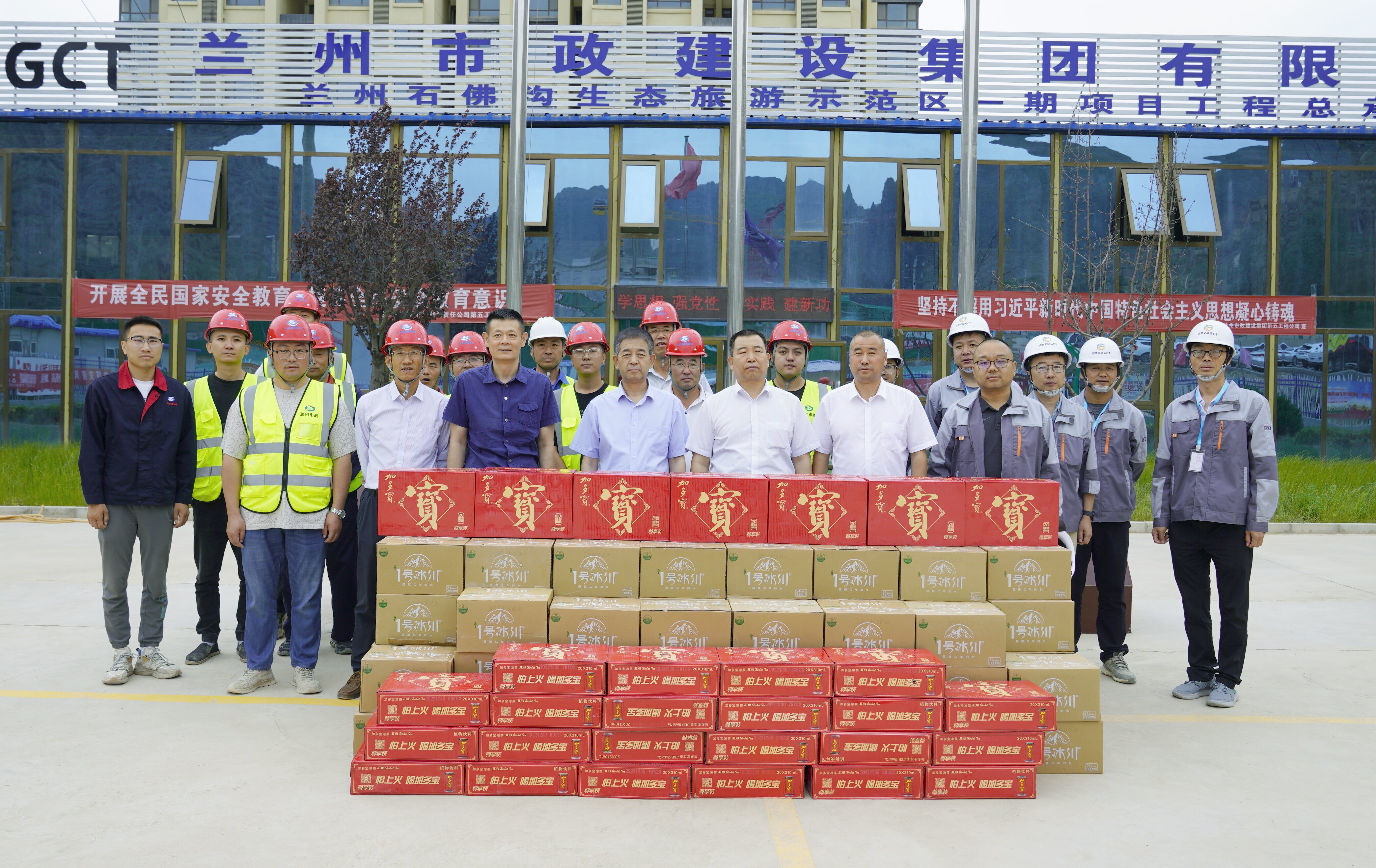 7月5日上午,甘肅文旅產業集團有限公司黨委副書記、工會主席王寧一行深入到公司承建的石佛溝生態旅游示范區項目部,代表集團看望慰問高溫下堅守在施工一線的廣大員工,送去礦泉水和飲料,表達了對基層員工的人文關懷。